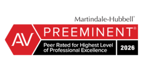 - AV Preeminent Rating for Highest Level of Professional Excellence, Martindale-Hubbell